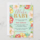 With gorgeous tropical watercolor flowers and touches of gold, this is the perfect invitation for a Summer or Tropical themed baby shower.