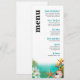Beautiful, fun BEACH WEDDING DINNER MENU features plumeria frangipani flowers, nautilus shell, starfish and palm fronds with an ocean view. Perfect for beach weddings or destination island weddings. Matching Wedding Invitations, Details Cards, RSVP Cards, stickers and more items also available. I welcome custom requests ~ email me for special personalisation or other matching products: cheryl@cheryldanielsart.com. Beach Wedding Menu designed by Cheryl Daniels © 2016.