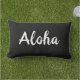 This fun, black and white outdoor cushion is decorated with the tropical greeting, Aloha, making it the perfect accessory for the boat, beach house, pool house, patio, deck or pool area. This pillow coordinates perfectly with several other outdoor pillows in the Outdoor Pillow Collection of PrettyFancyPillows.