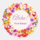 Aloha is a joyful greeting wearing the special Hawaiian fragrance of colourful flowers. Customise this floral wreath with your own text and create a unique sticker for any occasion.