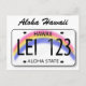 Postcard with a license plate from Hawaii and the text 'Aloha Hawaii'.