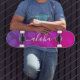 “Aloha”. Bring a bit of the Hawaiian islands to your city streets whenever you use this brightly colored, chic, striking, stylish, modern skateboard sporting crisp, white handwritten script typography over a graphic, pineapple pattern in a vivid purple and hot pink ombre. Makes a fun and stylish statement every time you surf the pavement. Makes a great gift for a friend, or for yourself if you can’t bear to gift it away!