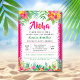 Celebrate that special graduation with this Hawaiian theme luau party invitation. Features bright colour "Aloha!" with tropical pink hibiscus and greenery. Text can be fully personalised for your special event. Back features bright colour tropical border design. Matching address labels, stickers, t-shirts and more available in my store. Design©Rosalind Moore, Cherry Lane Designs.