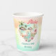 Tropical summer Hawaiian-themed party paper cups in pastel colours, featuring a tropical heart with a beach view, flamingos, and flowers with a rainbow-coloured background. Easily personalise the text. - Kate Eden Art