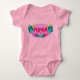 Cartoon flowers help send the message that aloha means hello! This design is available in another colorway as well. This original cartoon adorns these infant creepers on the front with a companion print of a cluster of flowers on the back. These designs come in several colorways.