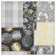 Illuminating yellow, ultimate grey, taupe, and black colorway. Our tropical patchwork is a combination of our best selling aloha prints. This design is a perfect way to add a touch of aloha to your home decor. Palm Whisperer, Malia Hibiscus, Midnight Garden, Surf Pareau, Momona Pineapple, Makapuu Beach and some tropical plaids create a patchwork utilising a coordinated colour story. Great for that beach house, dorm room or your tiki lounge!