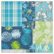 Turquoise, teal blue, navy blue, lime green and aqua colorway. Our tropical patchwork is a combination of our best selling aloha prints. This design is a perfect way to add a touch of aloha to your home decor. Palm Whisperer, Malia Hibiscus, Midnight Garden, Surf Pareau, Momona Pineapple, Makapuu Beach and some tropical plaids create a patchwork utilising a coordinated colour story. Great for that beach house, dorm room or your tiki lounge!