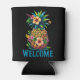 Bring paradise to your party with this vibrant can cooler from the Welcome Pineapple Collection. Featuring a bold pineapple design with hibiscus blooms and a turquoise “WELCOME” on black, it’s perfect for house parties, beach gatherings, or vacation rentals. Stylish and functional, it sets a warm tone and makes a great keepsake for guests.