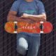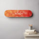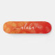 “Aloha”. Bring a bit of the Hawaiian islands to your city streets whenever you use this brightly colored, chic, striking, stylish, modern skateboard sporting crisp, white handwritten script typography over a distressed graphic, pineapple pattern in a vivid yellow and orange ombre. Makes a fun and stylish statement every time you surf the pavement. Makes a great gift for a friend, or for yourself if you can’t bear to gift it away!