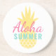 Welcome the summer season with this vibrant "Aloha Summer" drink coaster design! Features stylish pink and turquoise blue text and a bright yellow tropical pineapple. Perfect for summer decorating. The custom text can be fully personalised.