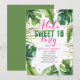 ALOHA SWEET 16 Sixteen Tropical Leaves Pink Green Invitation