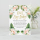 Girl's watercolor aloha baby shower don't say baby 5x7 inch sign features various green tropical foliage and some white and pink flowers on a white background. The heading is a faux gold foil calligraphy text image.