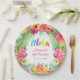 This fun birthday Aloha luau plate features bright tropical flowers, flamingos and your information.  Matching party supplies available in my store. Design©Rosalind Moore, Cherry Lane Designs
