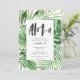 Modern tropical palm leaf watercolor foliage party invitations. Hand painted effect script text. Part of a on trend summer collection. Background colour can be changed.