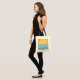 Bag with design of different shades of blue waves with rising sun on the horizon