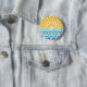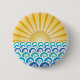 Button with design of different shades of blue waves with the sun rising on the horizon