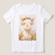 An adorable alpaca with a flower crown smiles contentedly, surrounded by vibrant wildflowers. The gentle pastel hues and soft features create a whimsical, joyful atmosphere.