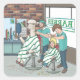Artwork from my children's book "Field Trip to the Alpaca Farm". Funny illustration of an alpaca getting a haircut in the barber shop.