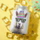 He's ready for a party.  An alpaca in a party hat and glasses.