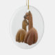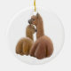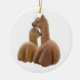 Original fine art design of a mother Alpaca and her cria by illustrator Carolyn McFann of Two Purring Cats Studio on a quality ornament for paca fans.