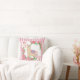 Alpaca Mama & Baby Pink Green Floral Pink Stripes Throw Pillow features adorable mama and baby alpacas with a pink and green floral trim against pretty pink stripes. The mama alpaca has a pink and blue band across her forehead and a brighter, deeper pink and blue floral saddle blanket. Behind her is her baby alpaca who is pink with little pink ear tips, wearing a blue beaded necklace with little pink and blue balls hanging from it. In the left upper corner are the letters that spell Ma Ma in pink and tan, and in the two remaining corners are pretty flowers in deep pink and lighter pink with small touches of yellow, and graceful green leaves hanging from the flowers. It's so cute. This pretty pillow will be a charming addition to your nursery decor, child's room, or anywhere you choose to put it. You can add your own text and images to personalise it if you like. For more decor and accessories for your home, office, school, vehicle, or outdoors, please visit our store at zazzle.com/DIYDecor,