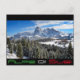 Postcard with the Langkofel (Sassolungo) Dolomites mountain and trees in the snow on the Alpe di Siusi (Seiser Alm) in South Tyrol, Italy in winter with a black border and the text: 'Alpe di Siusi'.