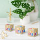 This whimsical design features retro style alphabet blocks, sporting an A, B and C, respectively. The primary colors are fun, and joyful, and coordinate well with everything else in this collection. This box is the perfect vessel for your thank you party favors for your baby shower or baby or young child's birthday.