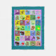 adorable fleece baby blanket features alphabet blocks with cute cartoon characters and the letters of the alphabet