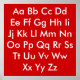 Alphabet chart, red and white featuring upper and lowercase letters.