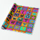 Christmas wrapping paper, colourful gift wrap, birthday wrapping paper, red blue yellow, orange green pink, tribal folk art, ethnic folk art, alphabet folk art, contemporary wrapping paper, Virginia Vivier, Vagabond Folk Art, gift wrap.