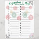 An easy way to play is to start with the letter A. Write down something Christmas related you can see starting with that letter. This could be a place, person, or an object. For example, A- Angel, B- Bow, C- Christmas Presents, and keep going through every letter!