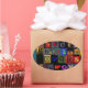 Alphabet Soup, mosaic letters design, fun colourfu Oval Sticker
