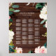 This wedding seating chart features a wreath of watercolor flowers in blush pink and white with green foliage on a rustic wood print background. For more advanced customisation of this design, please click the Customise Further link to change font, size, and colour. Matching items are also available.