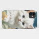 iPhone Case featuring a kitten in the Art Nouveau style of Alphonse Mucha! A white and fluffy kitten with blue eyes poses with yellow flowers. A cute gift for cat lovers and Art Nouveau collectors!