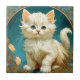 Ceramic Tile featuring a white cat in the Art Nouveau style of Alphonse Mucha! A fluffy white cat stares wide eyed at the viewer against a blue backdrop. A great gift for cat lovers and Art Nouveau collectors!