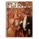 Alphonse Mucha Flirt notebook. Poster advertisement from 1899. Czech artist Alphonse Mucha created some of the most captivating advertisements of the Art Nouveau movement. Flirt is a commercial poster fro Biscuits Lefevre-Utile featuring a pretty young woman wearing a pink Victorian dress flirting with a dashing young man with a moustache wearing a black tuxedo. The couple is surrounded by foliage including exotic white flowers. The company’s logo appears at the bottom of the poster along with Mucha’s signature and date.