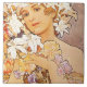 Alphonse Mucha Flower Art Nouveau Illustration With Girl Holding A Bouquet Of Flowers.