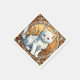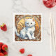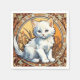 Napkins featuring a cat in the style of Alphonse Mucha! This fluffy white kitten looks adorably at the viewer. Flowers decorate the scene. A purr-fect gift for cat lovers and Art Nouveau collectors!
