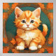 Poster featuring an orange cat in the style of Alphonse Mucha! This adorable kitty with green eyes is framed by autumn leaves. A wonderful gift for cat lovers and Art Nouveau collectors!