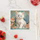 Napkins featuring a white cat in the style of Alphonse Mucha! This blue eyed fluffy kitten poses with pink flowers and blue blankets. A fabulous gift for cat lovers and Art Nouveau collectors!