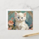 Postcard featuring a white cat in the style of Alphonse Mucha! This blue eyed fluffy kitten poses with pink flowers and blue blankets. A fabulous gift for cat lovers and Art Nouveau collectors!
