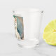 Shot Glass featuring a white cat in the style of Alphonse Mucha! This blue eyed fluffy kitten poses with pink flowers and blue blankets. A fabulous gift for cat lovers and Art Nouveau collectors!