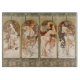 Immerse yourself in the captivating elegance of Alphonse Mucha's "The Seasons" from 1897, an iconic masterpiece of the Art Nouveau movement. This exquisite artwork beautifully depicts four ethereal female figures, each personifying a different season with graceful flowing lines, rich natural motifs, and Mucha's signature decorative style. From the delicate blossoms of Spring to the bountiful harvest of Autumn, and the serene beauty of Winter to the languid warmth of Summer, this piece captures the essence of nature's cycle through stunning artistic detail. Perfect for art history enthusiasts, lovers of fin-de-siècle aesthetics, and anyone who appreciates the luxurious beauty of Art Nouveau.