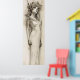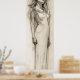 This beautiful poster features a sketch based on Alphonse Mucha's 1897 pencil sketch series, which were originally created as a calendar designs. However, the calendar part was removed, and the sketch became a popular decorative panel sold under the title "Evocation" in 1898. The sketch portrays a floating woman in a light cloth dress, rendered in delicate sketched lines, showcasing Mucha's unique style. The drawing captures Mucha's dreamy vision of a spiritual being, a motif he had been pursuing since the early 1890s. Interestingly, Mucha was close to the Spiritualists' circle in Paris during that time, often participating in psychic experiments in his studio using a medium. The woman's fixed gaze and rigid posture show the influence of such experiments.