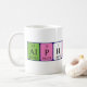 Alphonso spelled out as Al P H O N S O (Aluminum Phosphorus Hydrogen Oxygen Nitrogen Sulfur Oxygen) on a mug for the scientist in you.