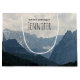 Happy Birthday gift bag with a photograph of beautiful mountains, cloudy sky, and rolling hills filled with trees in the foreground. Grey blue colour scheme.
