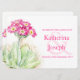 Beautiful alpine primula scotica floral wedding invite. Shaded in pink, green, brown and white. Edit this invitation with your own words. Unique design and original watercolor botanical fine art painting by Sarah Trett.