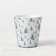 This latte mug features downhill skiers navigating through tree-lined slopes, with elusive yetis playfully hiding and darting across the scene.