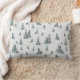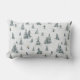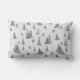 This rectangular throw pillow has downhill skiers navigating through tree-lined slopes, with elusive yetis playfully hiding and darting across the scene.