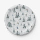 These paper plates feature downhill skiers navigating through tree-lined slopes, with elusive yetis playfully hiding and darting across the scene.